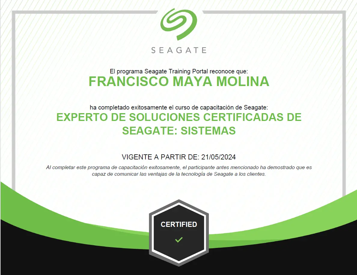 Ha recibido capacitación de empresas lideres en la industria como Seagate y Western Digital, así como de fabricantes de equipo especial de recuperación, entre otros.